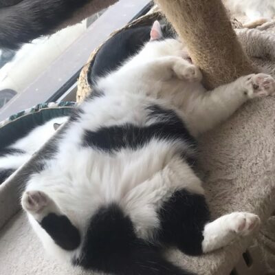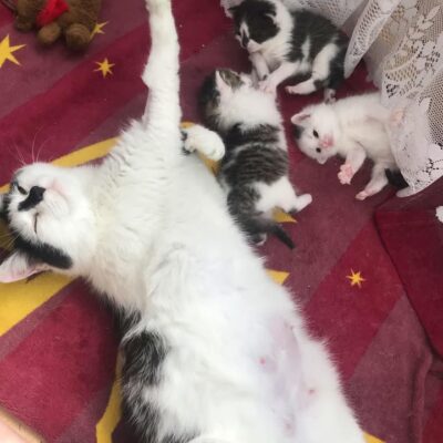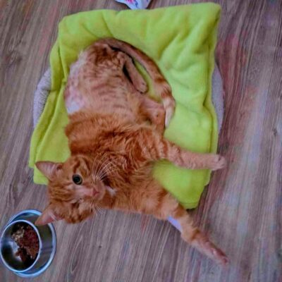 Wrócił do pełnej formy i spędzał radośnie czas bawiąc się z rówieśnikami. Niestety coś się zepsuło. Pewnego dnia kotek nie wyszedł już tak chętnie ze swojego domku na posiłek, a dzień później zaczęły się ataki przypominające padaczkę. Zauważyliśmy też brzuszek który powiększył się w ekspresowym tempie. Jak się okazało – zebrał się w nim płyn fipowy 🙁
