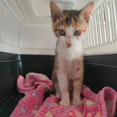 Widok nas przeraził. Nigdy nie widzieliśmy kotka w takim stanie. Konsultacja z weterynarzem, wskazała, że malutka ma przepuklinę pachwinową, a jej wnętrzności przemieściły się do wewnętrznej strony tylnej łapki. Jest to stan bezpośrednio zagrażający jej życiu i wymaga niezwłocznej interwencji chirurgicznej, ale…