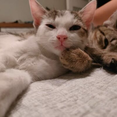 Laseczka i Ziomuś to dwa kociaki zgarnięte w ostatnim czasie z ulic Stalowej Woli. W domu tymczasowym maluszki bardzo się polubiły, a ich życie toczy się wokół gonitw, polowań na owady i różne inne paprochy, jedzenia i spania 🙂