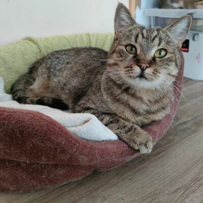 Gdyby była niebieska lub długowłosa, z pewnością już dawno byłaby w domu. Niestety urodziła się jako pręgowany tygrysek, a taki kolor uważany jest przez większość osób za pospolity i nieatrakcyjny.