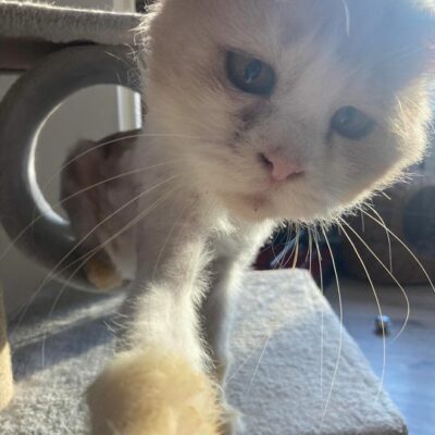 Kotka przebywa w naszej kociarni odkąd była bardzo malutka. Nawet jeśli kiedyś miała swój własny dom i ludzi na wyłączność, to już tego nie pamięta.