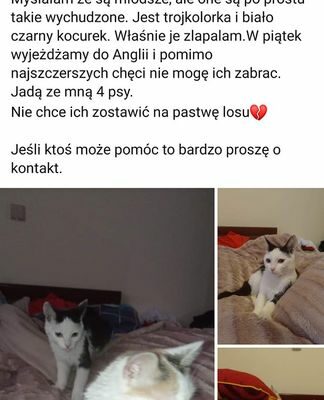 Kociaki zostały zabezpieczone u wolontariuszki, która obecnie w 40 m2 ma kilkanaście kotów i dużego psa. Nikt inny się do pomocy nie zgłosił 🙁