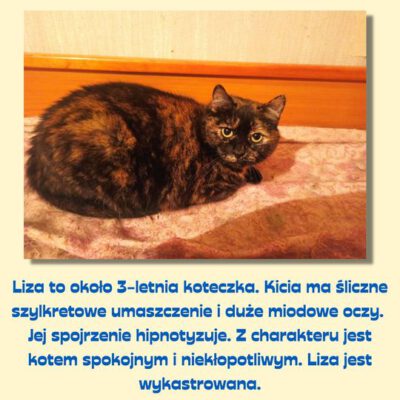 To ok. 5 – letnia przemiła kotka, kochająca człowieka i słuchająca go z ogromną uwagą <3