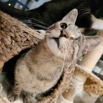 Bardzo dobrze dogaduje się z innymi kotami…jest absolutnym pacyfistą i nienachalnym towarzyszem, który zawsze znajdzie sobie kąt dla siebie i stamtąd obserwuje otoczenie 🙂
