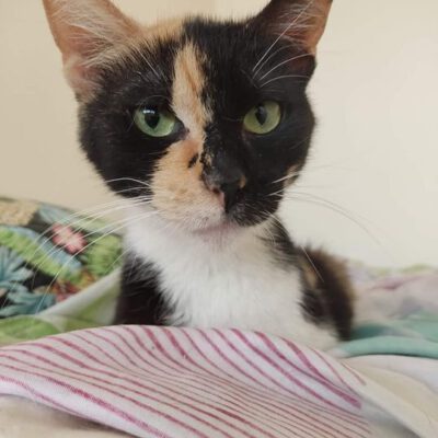 Oto kotka zabrana z gminnej przechowalni, o której pisaliśmy ostatnio. Tym razem udało się sfotografować ja w odrobinę lepszym świetle… niestety nasza izolatka jest bardzo ciemna, a kotka musi w niej spędzić jakiś czas 😿 Wiemy jednak, że na koty reaguje bardzo dobrze i szukamy jej domu jako jedynaczce lub z innym spokojnym kotem.