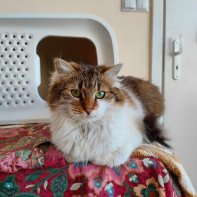 Zgłoszono nam go już jakiś czas temu…Filuś miał dom na wsi, gdzie ani o niego, ani inne koty nie dbano. Mamy też podejrzenie, że ten piękny i okazały kocur służył im do rozmnażania, a następnie sprzedaży pięknych kociąt (w tym samym domu była rasowa kocica i jedno tylko kociątko – o umaszczeniu dość pospolitym, co może świadczyć, że jako jedyne „nie poszło”).