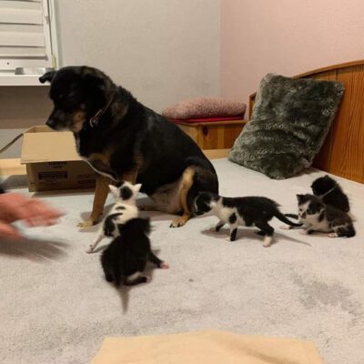 Maluchy z wczoraj zabezpieczone na 2 tygodnie. Mają też nową psią mamę, która na wstępie dokładnie je umyła 🙂