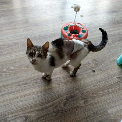Po opuszczeniu lecznicy, trafił do nas, gdyż osoba która go znalazła, nie była w stanie się nim zająć.