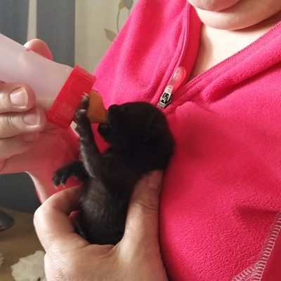 Karmienie butelką niestety niesie duże ryzyko zachłyśnięcia i wiele kociaków nie przeżywa bez kociej mamy. Ten okazał się bardzo zdolny 😻