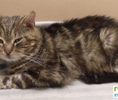 Żbikuś wymaga jeszcze długiego leczenia i wielu badań (jest starszym kotkiem), na które nas niestety nie stać.