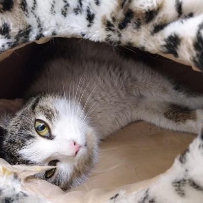 Merka trafiła do nas w zeszłym tygodniu z terenu jednego z zakładów przemysłowych. Była przeganiana przez ludzi i koty tam żyjące, mimo iż urodziła się jako kotek uliczny.