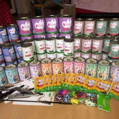 Dziś Święty Mikołaj za pośrednictwem naszych wolontariuszek Natalii i Pauliny oraz ich rodziny i znajomych, dostarczył nam kolejne prezenty w postaci super jakości karm i ulubionych zabawek naszych kotków