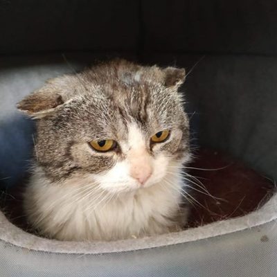 Uszatek trafił do nas w ostatnich dniach. Został wypatrzony przez Natalię i Paulinę na jednym z osiedli w Stalowej Woli. Jego wygląd, w tym liczne rany i poszarpane uszka, wskazują, że wiele w życiu przeżył. Dziewczyny zabrały go do siebie, a następnego dnia do weterynarza. Okazało się , że kocurek ma początek niewydolności nerek, białaczkę i FIV (białaczkę potwierdzimy badaniem pcr).
