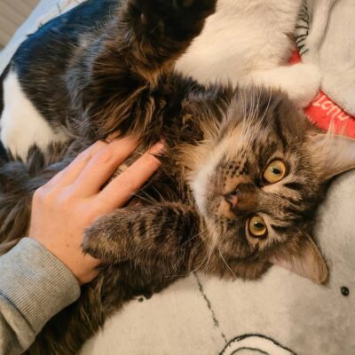 Kociak kocha przygody i uwielbia pakować się wszędzie, gdzie coś się dzieje – nawet jeśli jest to zamiatanie lub rozpakowywanie dostawy karmy 🙂
