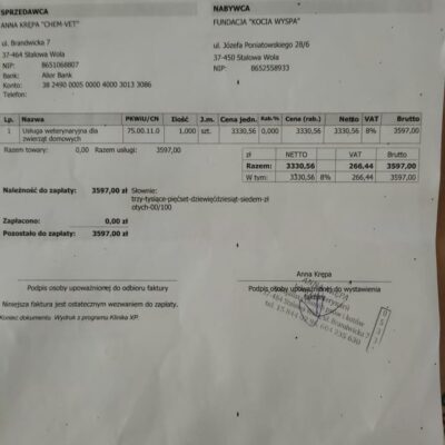 Fundacja Kocia Wyspa 26 1090 2750 0000 0001 2134 8540 (tytuł: na operację)