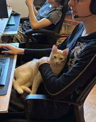 Po ponad miesiącu od przybycia, kotka uwielbia ludzi i wskakuje na ramiona. Daje się głaskać i nosić na rękach.