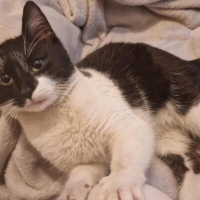 Wciąż bardzo nie lubi innych kotów i jest w fundacji bardzo przebodźcowana.