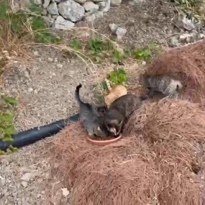 Obecnie, jedzonka już nie ma, a wolontariuszka kupuje je wyłącznie za swoje środki 🙁 Koty są bardzo bardzo, głodne. Spójrzcie tylko na filmik 🙁