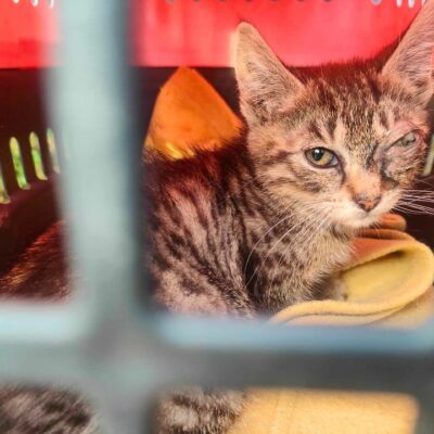Jakiś czas temu prosiliśmy o pomoc dla działkowego kociątka z chorym oczkiem. Aby zacząć leczenie, potrzebny był dom tymczasowy, a leczenie takich dolegliwości nie daje gwarancji sukcesu, a jest długie, kosztowne i bardzo mozolne.