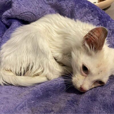 W przypadku tego malucha, konieczne jest także podanie drogiej surowicy, gdyż kociak, siłą rzeczy, ma kontakt z groźnymi wirusami, będąc pod naszą bezpośrednią opieką. Leczenia wymagają też biegunki na które malec cierpi i świerzbowiec uszny.