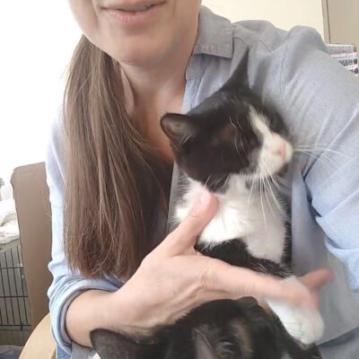 Dorosła kotka jest bardzo przerażona i potrzebuje spokojnego miejsca i wyrozumiałego opiekuna.