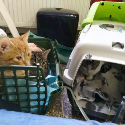 Koty zostały przerzucone przez dwumetrowy płot, w zaklejonych małych pudełkach, przez osobę będąca członkiem rodziny właściciela posesji. Spędziły długie godziny w pudełkach i w ten upał mogło się to skończyć dramatycznie.