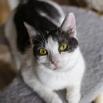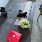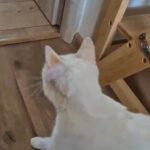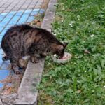 Kotek miałczy i nawołuje, ale ucieka przy próbie podejścia.