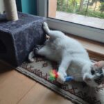 Wrócił do pełnej formy i spędzał radośnie czas bawiąc się z rówieśnikami. Niestety coś się zepsuło. Pewnego dnia kotek nie wyszedł już tak chętnie ze swojego domku na posiłek, a dzień później zaczęły się ataki przypominające padaczkę. Zauważyliśmy też brzuszek który powiększył się w ekspresowym tempie. Jak się okazało – zebrał się w nim płyn fipowy 🙁