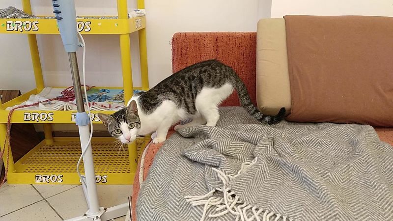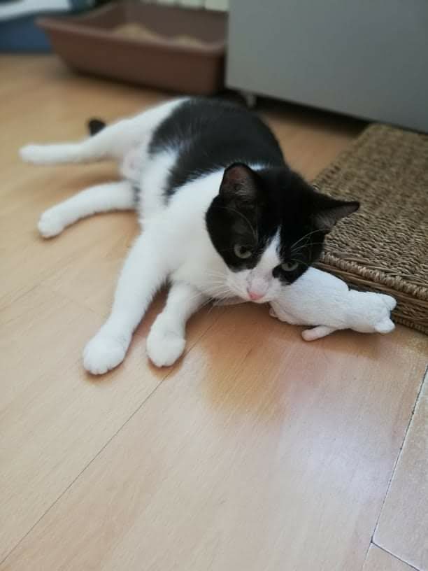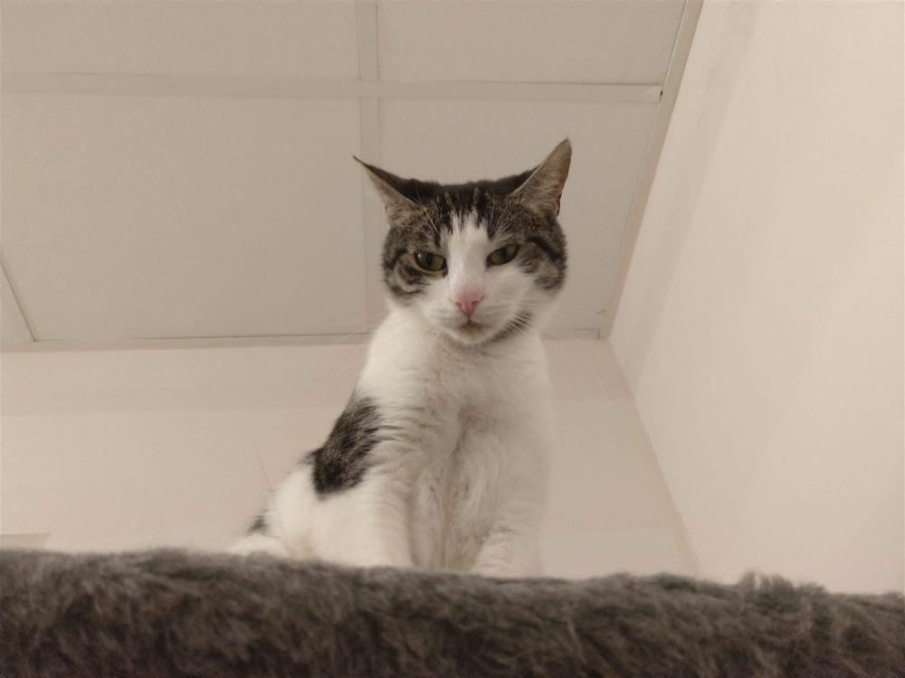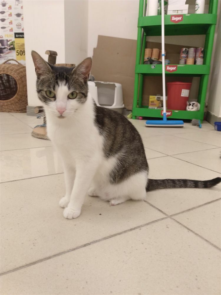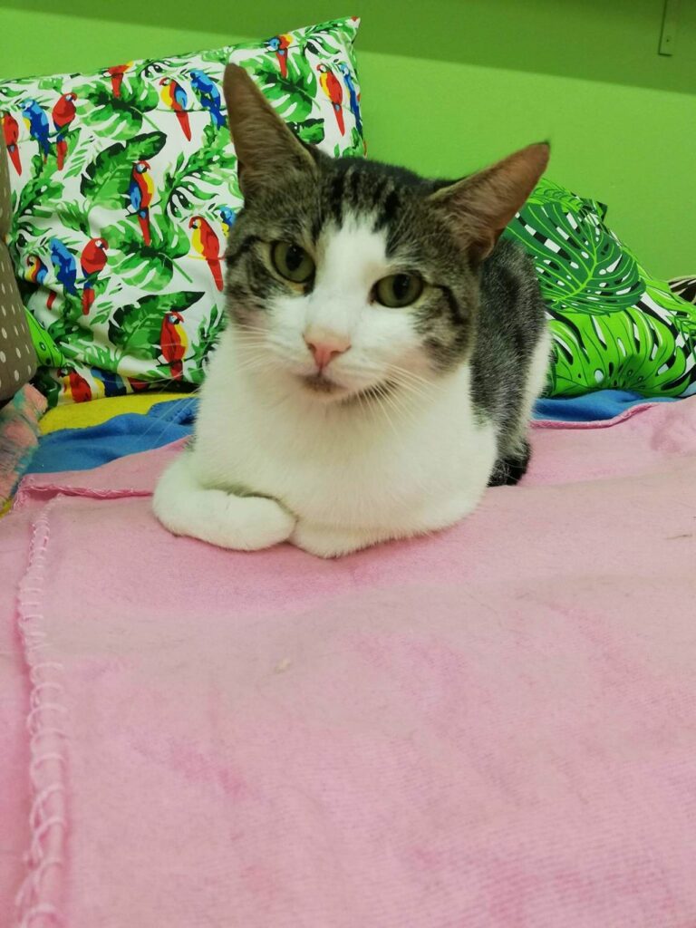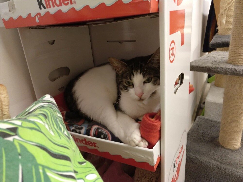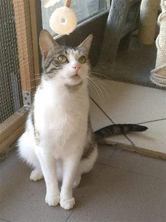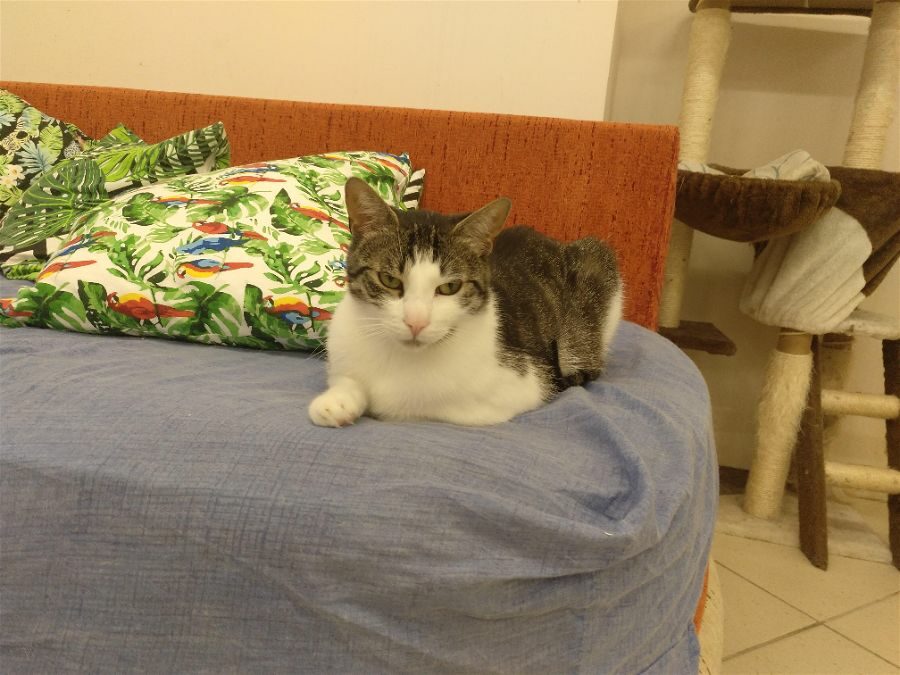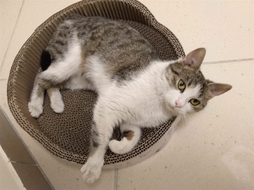 Kotka bardzo pragnie kontaktu z człowiekiem, lecz troszkę się jeszcze boi. Idealna do spokojnego domu, bez zwierząt i dzieci. Do adopcji pójdzie razem ze swoją ulubioną zabawką – niebieskim tunelem, przy którym spędza bardzo dużo czasu każdego dnia.
