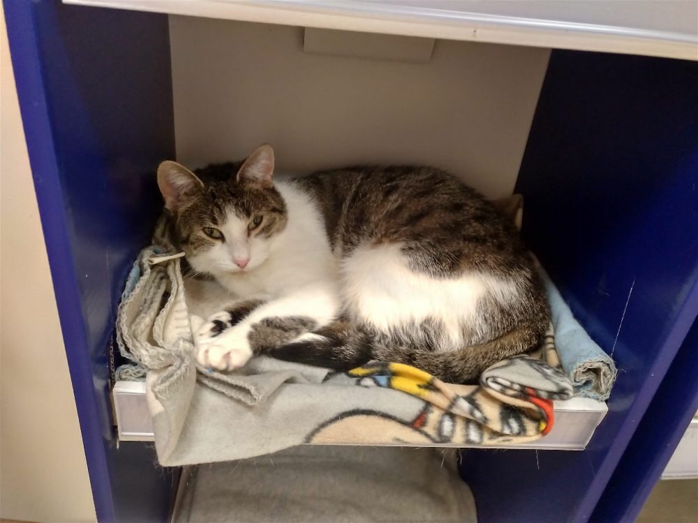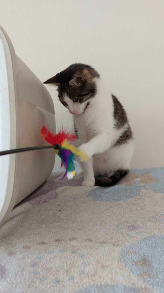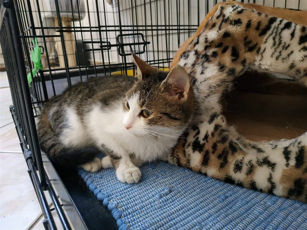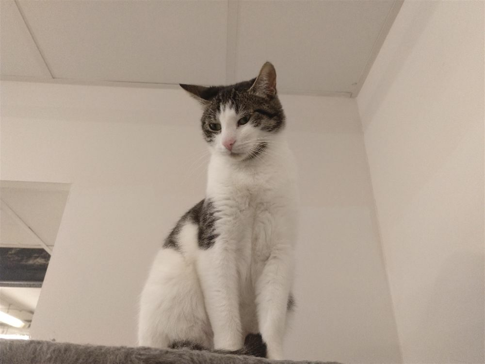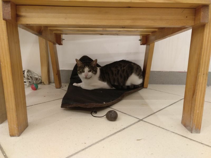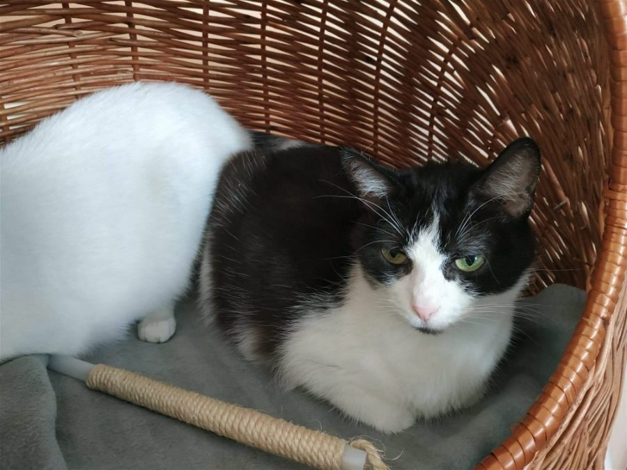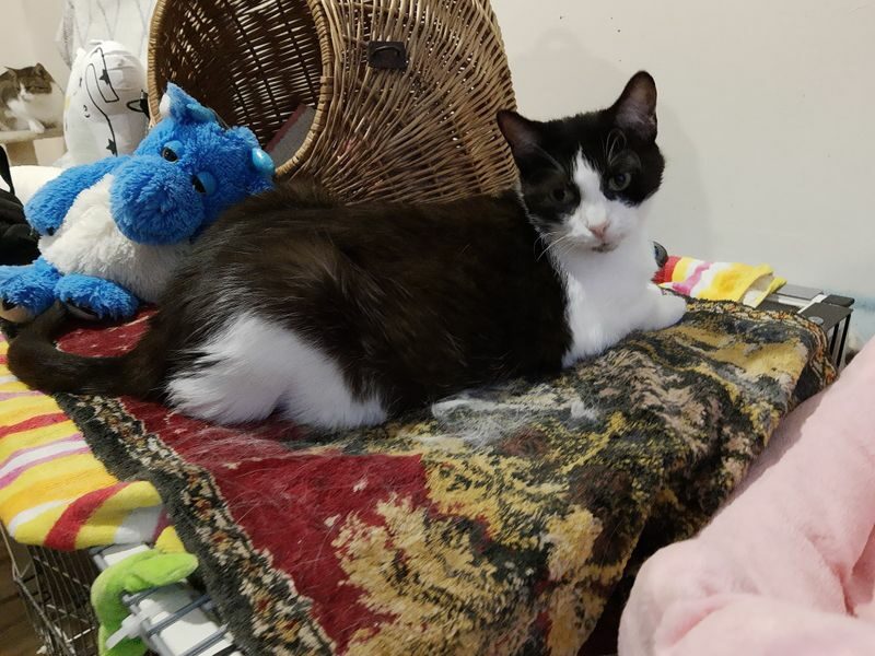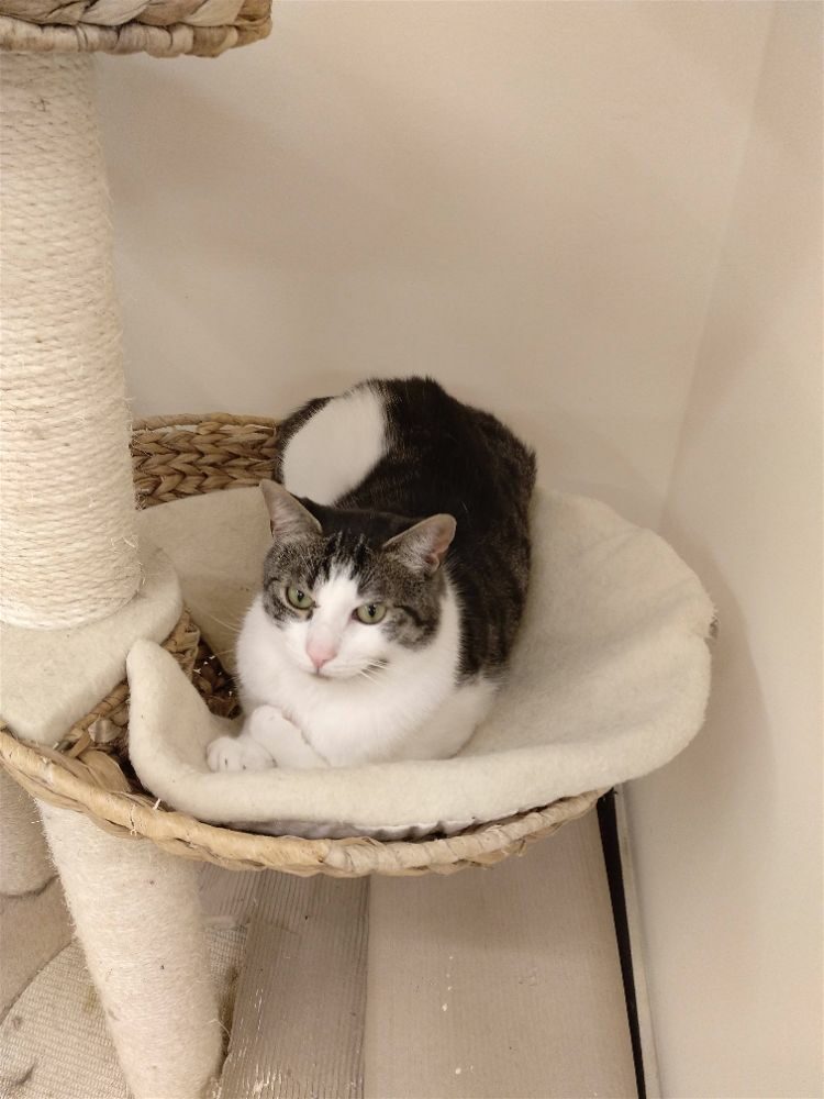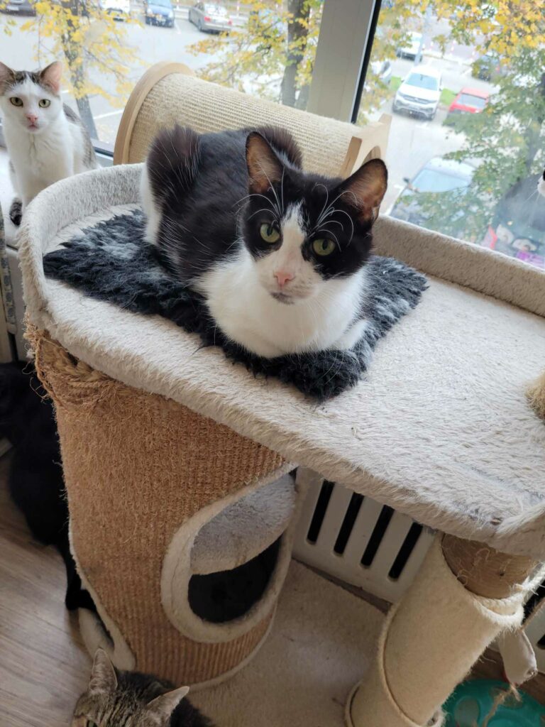 Kotka bardzo pragnie kontaktu z człowiekiem, lecz troszkę się jeszcze boi. Idealna do spokojnego domu, bez zwierząt i dzieci. Do adopcji pójdzie razem ze swoją ulubioną zabawką – niebieskim tunelem, przy którym spędza bardzo dużo czasu każdego dnia.