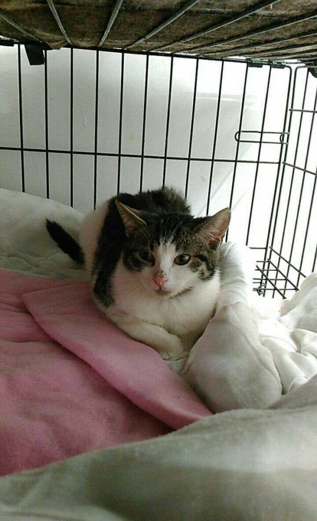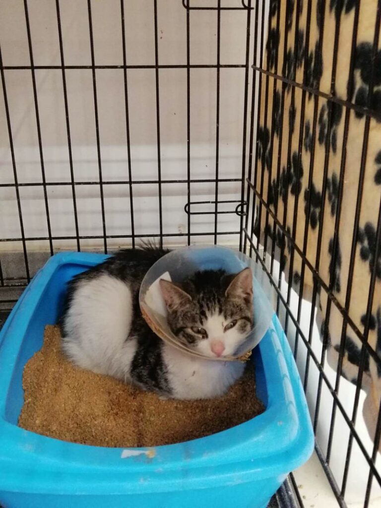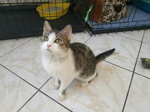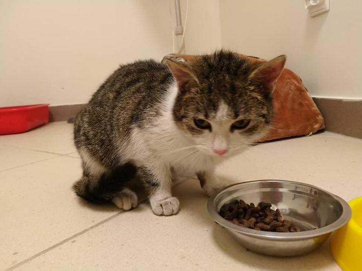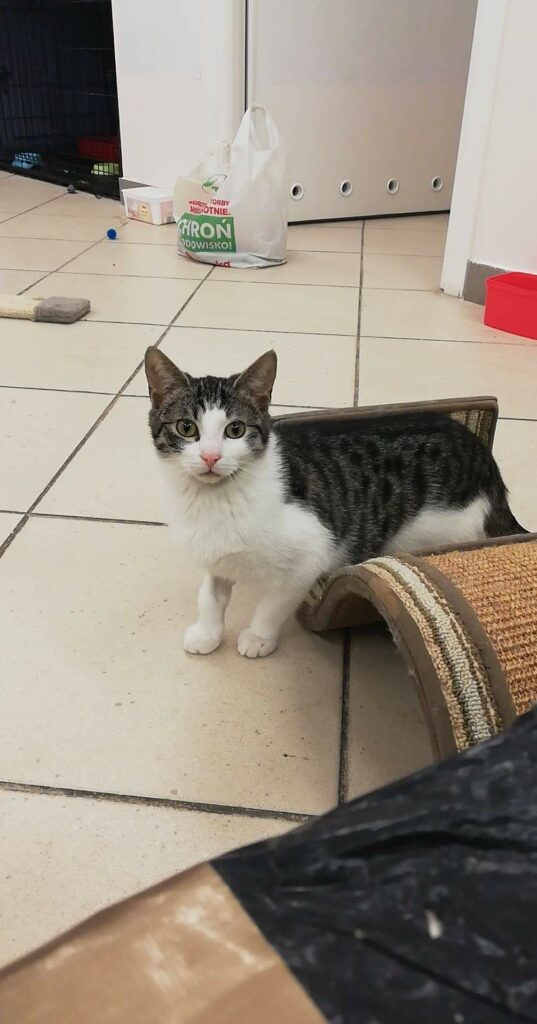 Merka trafiła do nas w zeszłym tygodniu z terenu jednego z zakładów przemysłowych. Była przeganiana przez ludzi i koty tam żyjące, mimo iż urodziła się jako kotek uliczny. Maleństwo zostało na wolności odrzucone przez stado i tylko możliwość ogrzania się w stróżówce jednego z zakładów, uratowało jej życie podczas silnych mrozów.