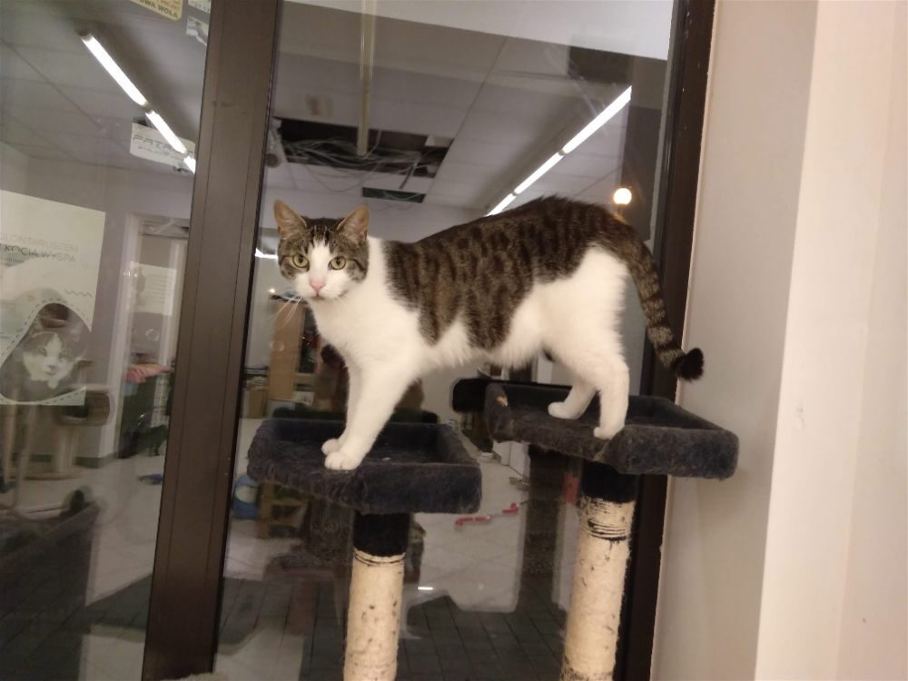 Dzikuś to kot dla wybranych. Jako mały kociak błąkał się po okolicy ruchliwej ulicy krwawiąc z łapki, okazało się, że trzeba było amputować mu paluszki w tylnej łapce. Mimo to biega, skacze, łapie muchy i komary. Uwielbia zabawy z innymi kotami. Jednak imię zobowiązuje i kotek jeszcze jest dziki, wciąż chowa się po kątach lub ucieka na widok człowieka. Dlatego szukamy mu czułego i cierpliwego domu, który zechce go oswoić. Koniecznie w kocim towarzystwie do szybszego oswajania.