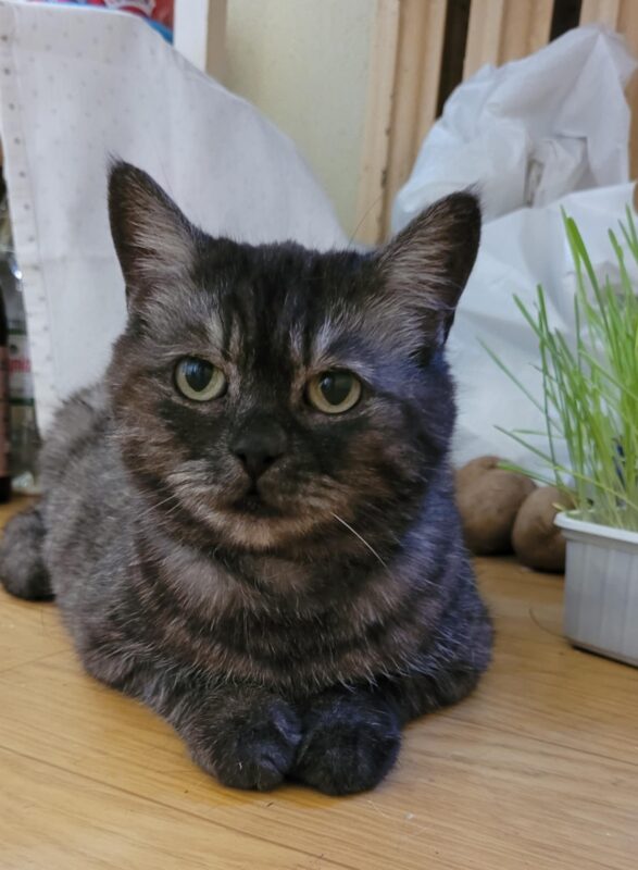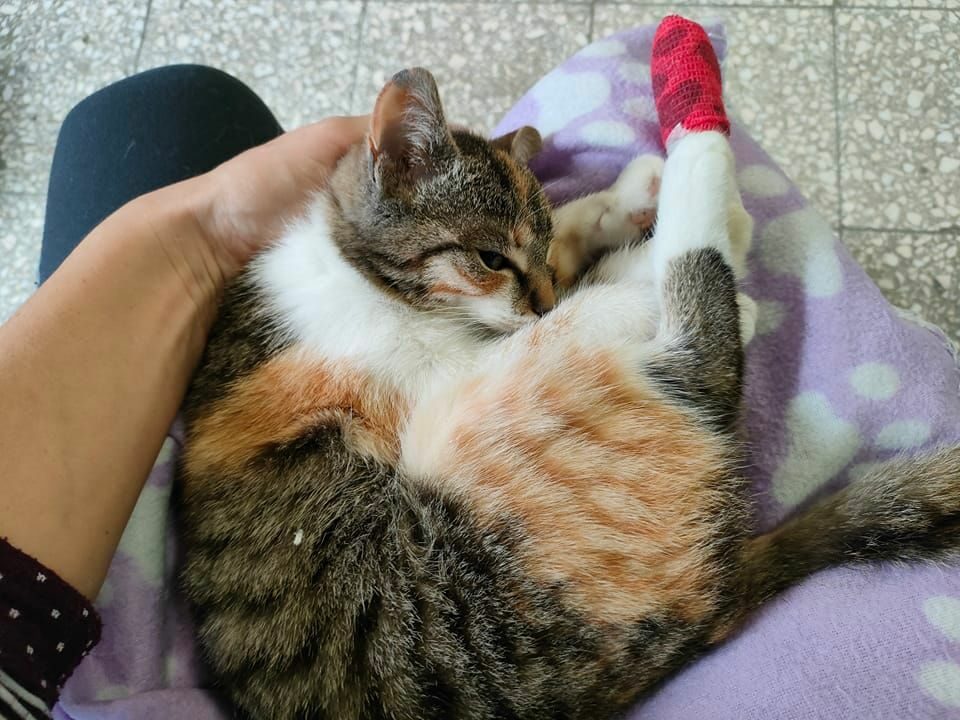 Łapka jest kotką żyjącą na wsi – inwalidką ze starym złapaniem łapki, powodującym, że może poruszać się tylko na trzech. Do niedawna była też kocią mamą, ale w pewnym momencie stała się zbyt chora, żeby karmić i ludzie musieli przejąć jej rolę. Tylko jednemu człowiekowi daje się złapać i tylko jeden człowiek mógł udzielić jej pomocy. Robił też co mógł, ale są takie sytuacje, gdzie tylko doświadczony opiekun, może uratować życie. U Łapki stwierdzono FIP i prawdopodobnie wynikające z tego: anemię i leukopenię (nie poprawiają się w wyniku leczenia). Wymaga nie tylko codziennego podawania leków, ale też całego szeregu preparatów wzmacniających, witamin, płynów i jedzonka – na tą chwilę konieczne jest karmienie na siłę. Łapka nie jest naszą kotką i moglibyśmy się od niej odwrócić, ale wiemy, że bez nas nie da rady. Tym bardziej, że po jakimś czasie leczenia jej przez karmiciela, wyniki są nadal dramatyczne. Kotka jest już trzema łapkami za tęczowym mostem.