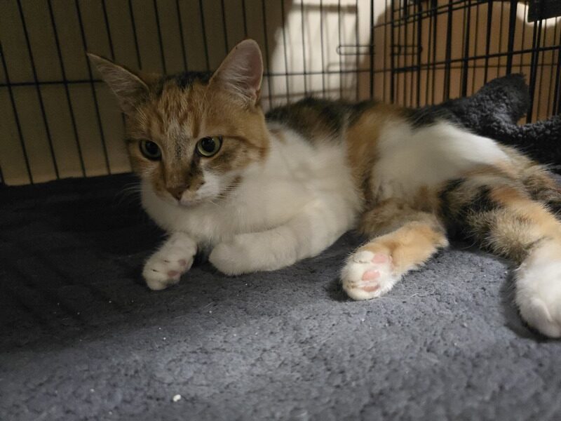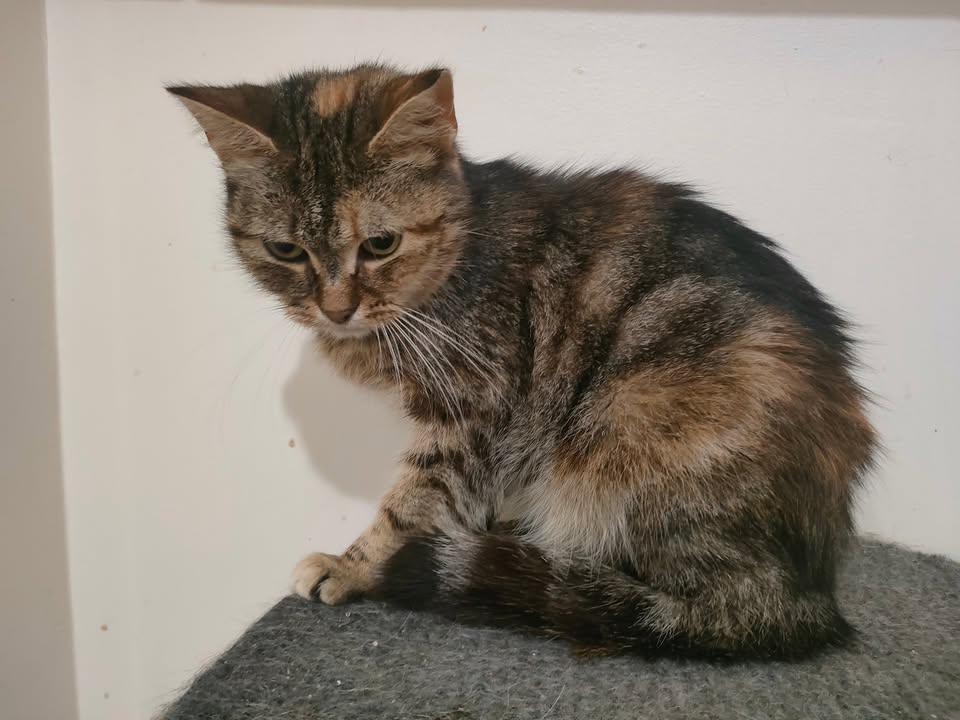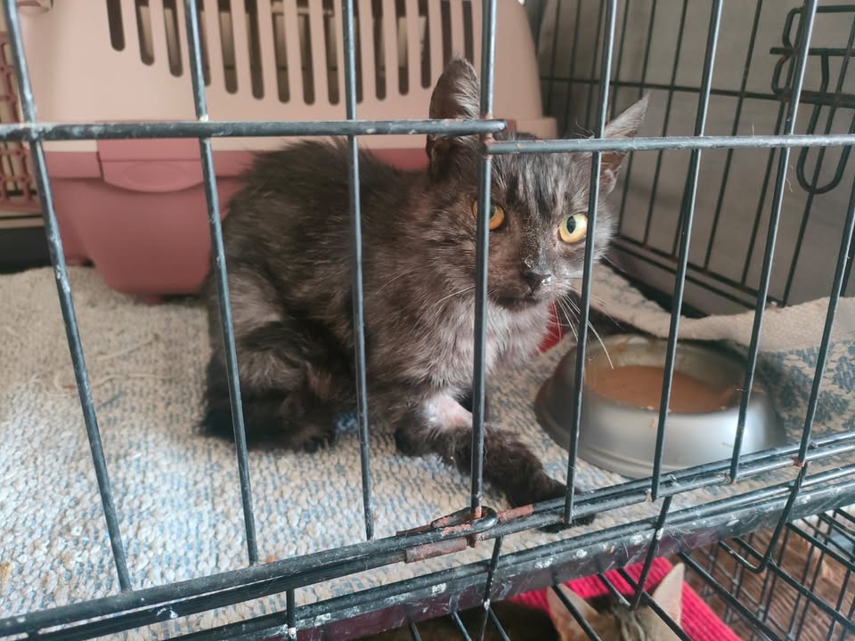 Łapka jest kotką żyjącą na wsi – inwalidką ze starym złapaniem łapki, powodującym, że może poruszać się tylko na trzech. Do niedawna była też kocią mamą, ale w pewnym momencie stała się zbyt chora, żeby karmić i ludzie musieli przejąć jej rolę. Tylko jednemu człowiekowi daje się złapać i tylko jeden człowiek mógł udzielić jej pomocy. Robił też co mógł, ale są takie sytuacje, gdzie tylko doświadczony opiekun, może uratować życie. U Łapki stwierdzono FIP i prawdopodobnie wynikające z tego: anemię i leukopenię (nie poprawiają się w wyniku leczenia). Wymaga nie tylko codziennego podawania leków, ale też całego szeregu preparatów wzmacniających, witamin, płynów i jedzonka – na tą chwilę konieczne jest karmienie na siłę. Łapka nie jest naszą kotką i moglibyśmy się od niej odwrócić, ale wiemy, że bez nas nie da rady. Tym bardziej, że po jakimś czasie leczenia jej przez karmiciela, wyniki są nadal dramatyczne. Kotka jest już trzema łapkami za tęczowym mostem.