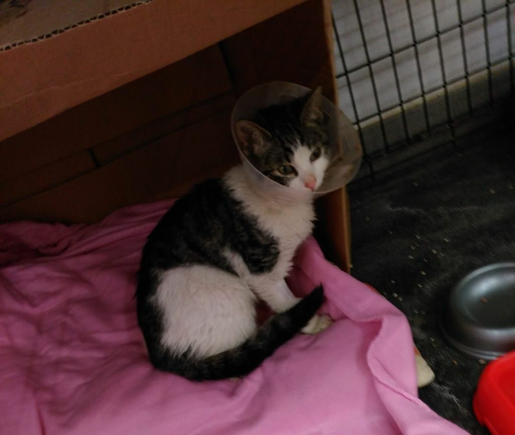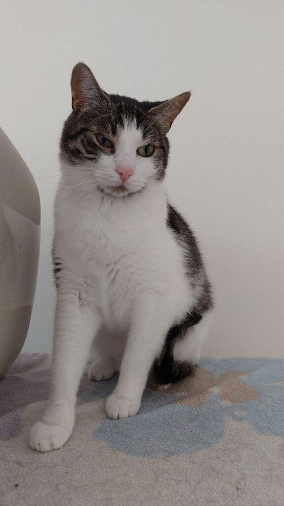 Chaplin, zwany u nas pieszczotliwie Kitlerem, to rezolutny młody kocurek w wieku niespełna roku, który trafił do nas z naszej zaprzyjaźnionej lecznicy. Był kotkiem gminnym, który został przyniesiony do Pani Doktor po wypadku. Stracił wtedy ogonek i został mocno poturbowany 🙁