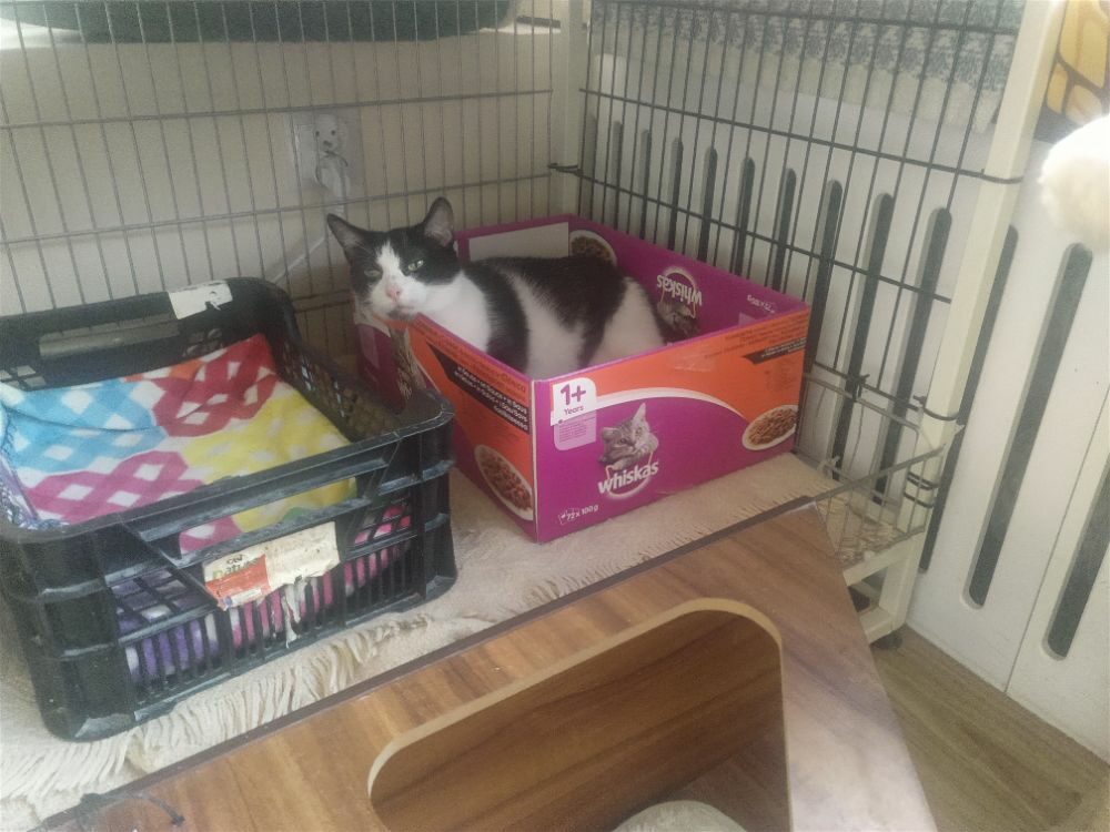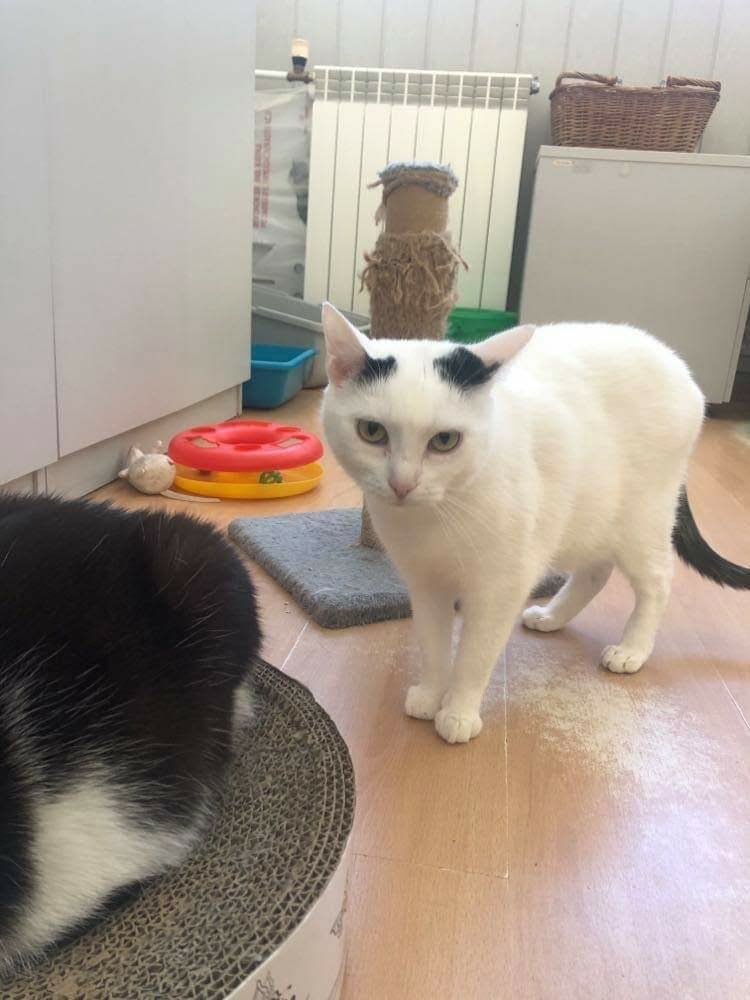 Szukamy mu domu z kocim towarzyszem, aby nie stracił kontaktu ze swoim gatunkiem 🙂 Poszukuje domku niewychodzącego.