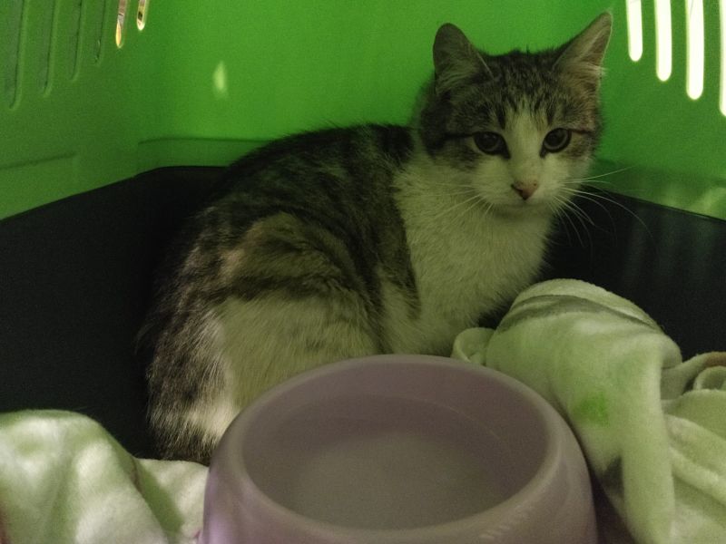 Miri przybyła z działek razem ze swoim przyjacielem. Kotek dotarła do nas z częściowym niedowładem tylnych łap, odparzeniami do mięśni oraz urazem neurologicznym, który powoduje odruchowe ruszanie łapkami, a ponieważ były to święta wielkanocne musiała czekać na lekarza aż dwa dni. Zapewniliśmy jej do tego czasu środki przeciwbólowe, jedzonko i spokój w towarzystwie jej przyjaciela, który wezwał dla niej pomoc i nie odstępował na krok. Obecnie przebywa w lecznicy. Niestety okazało się, że była postrzelona z wiatrówki (T.T)