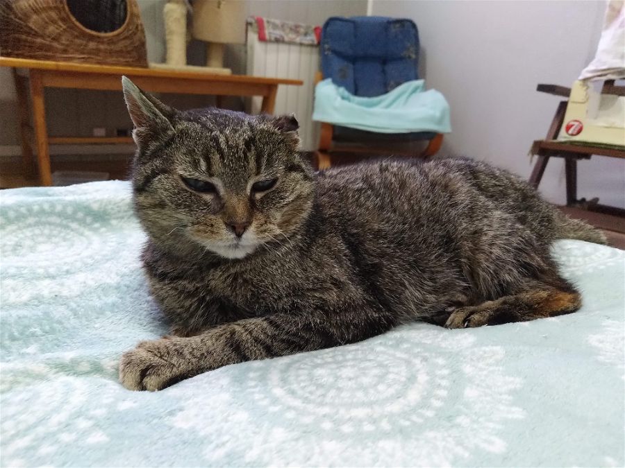 W tym roku, jej opiekunowie zauważyli że kotka bardzo schudła, a na grzbiecie ma ropiejącą ranę – prawdopodobnie od pogryzienia. Kotka znów do nas trafiła, lecz po leczeniu już nie wróciła na wolność. Maniusia jest starszą kotką, dla której cenniejszy okazał się bezpieczny kąt i miseczka pełna dobrego jedzonka.