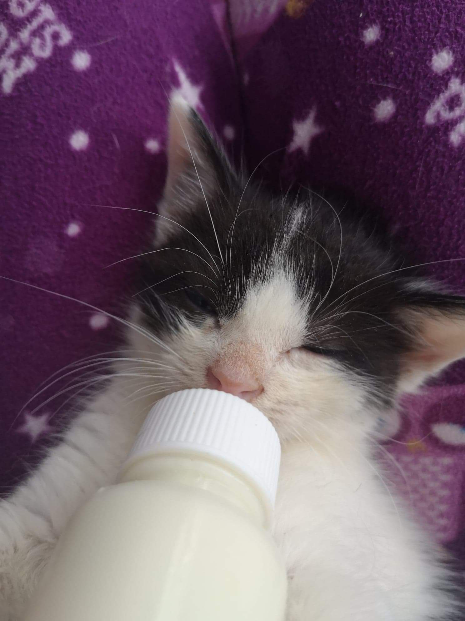Trafiła pod skrzydła fundacji razem z mamusią i piątką rodzeństwa. U koteczki wykryto wrodzone schorzenie stawów. Przejawia się to tym, iż jej miednica opada w dół, co powoduje lekkie utykanie na tylne łapki. Nie odczuwa przy tym bólu, funkcjonuje całkowicie normalnie. Skacze, biega i bawi się.
