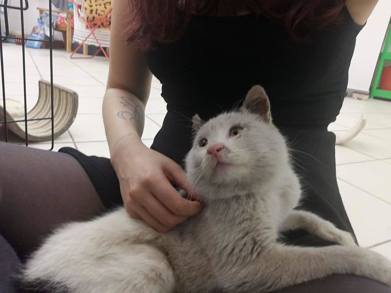 Smerfetka trafiła do nas spod opieki osób niepełnosprawnych, którzy nie mogli dłużej zajmować się nią i jej kocim towarzyszem. Kotka jest bardzo spokojna i łagodna. Na początku nieco lękliwa, lecz po jakimś czasie, chętnie przychodzi do człowieka i upomina się o uwagę. Niestety zaniepokoiło nas jej zbyt spokojne zachowanie, po badaniach okazało się, że ma nowotwór. Będziemy z nim walczyć. Smerfetka szuka domu jako jedynaczka lub z drugim spokojnym kotem.