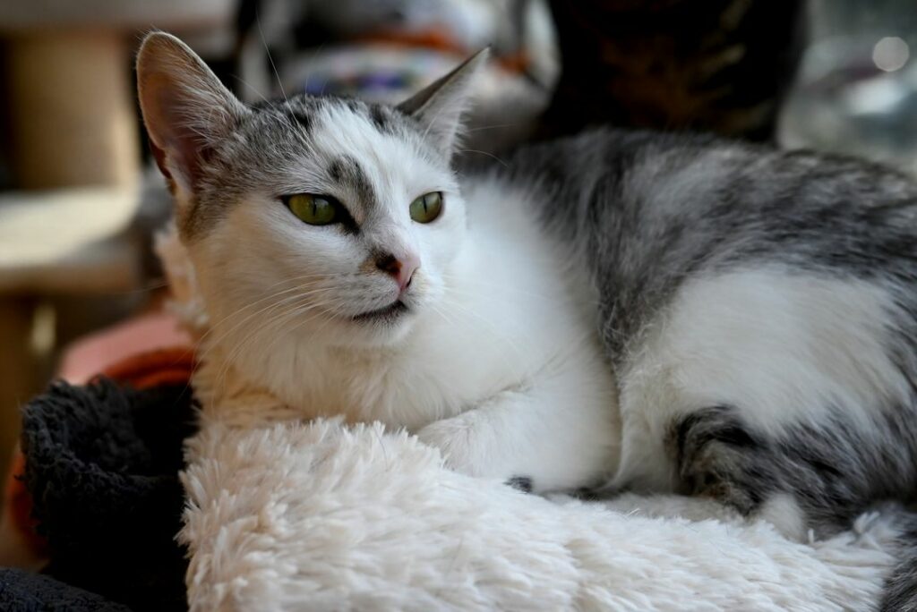 Poznajcie Milkę. Prześliczną biało – popielatą koteczkę, która trafiła do nas ze wsi. Początkowo myśleliśmy, że kotka jest dzika i nie odnajdzie się w zamknięciu wśród ludzi. Planowaliśmy wypuścić ją w miejscu bytowania, po sterylizacji.
