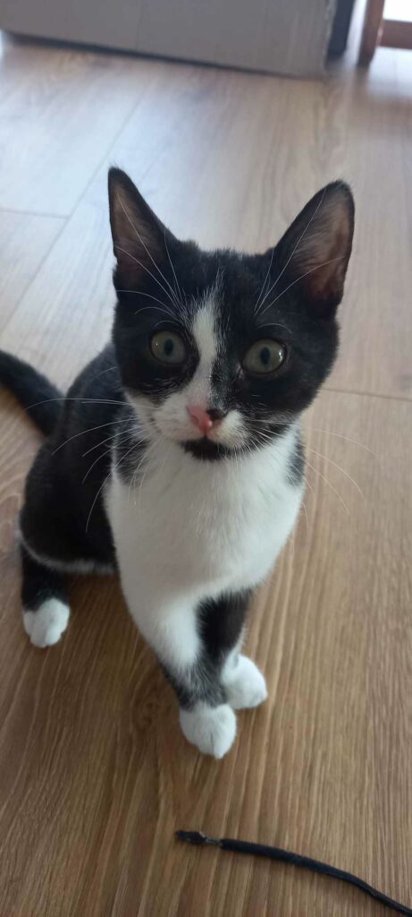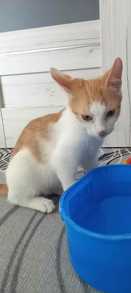 Kotek przynosi zabawki i korzysta z kuwety. Szuka domu, koniecznie z drugim małym kotem.