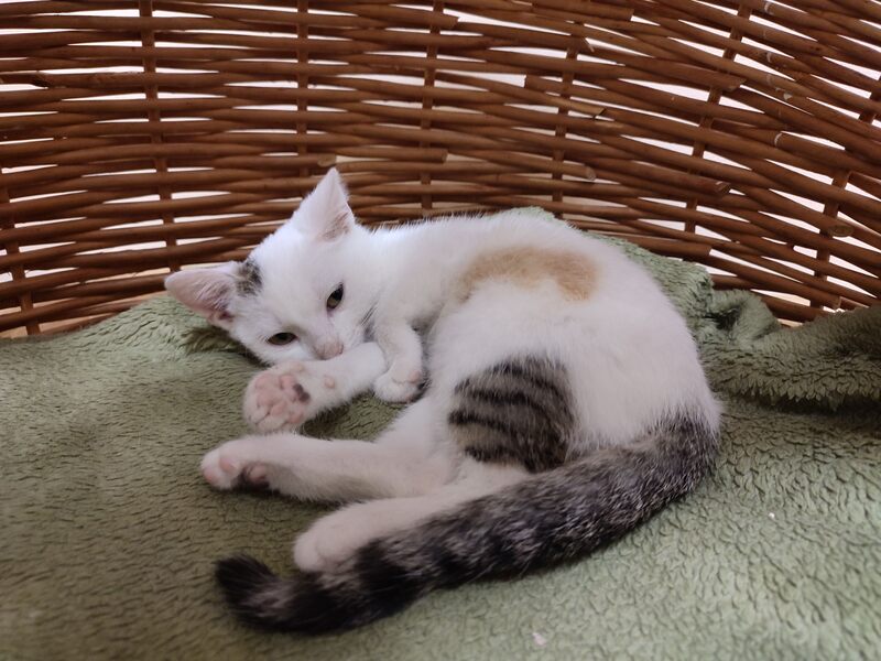 Kotek przynosi zabawki i korzysta z kuwety. Szuka domu, koniecznie z drugim małym kotem.