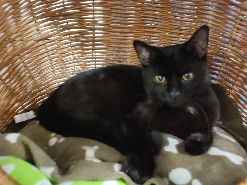 Cirbelek jest około rocznym kocurkiem – czarnym z delikatnymi prążkami – które tylko wprawne oko wytrawnego kociarza dojrzy. Cirbelka rozpoznajemy też po pięknych zielono – miętowych oczkach oraz ogonku który zawija się niczym znak zapytania 🙂