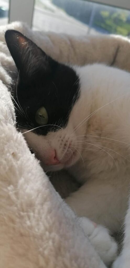 Nagle jakby dotarło do niego że musi wybrać pomiędzy życiem z człowiekiem a losem wolno żyjącego kota działkowego. Moko zrobił się cudownym miziakiem, który uwielbia zabawy ❤️
