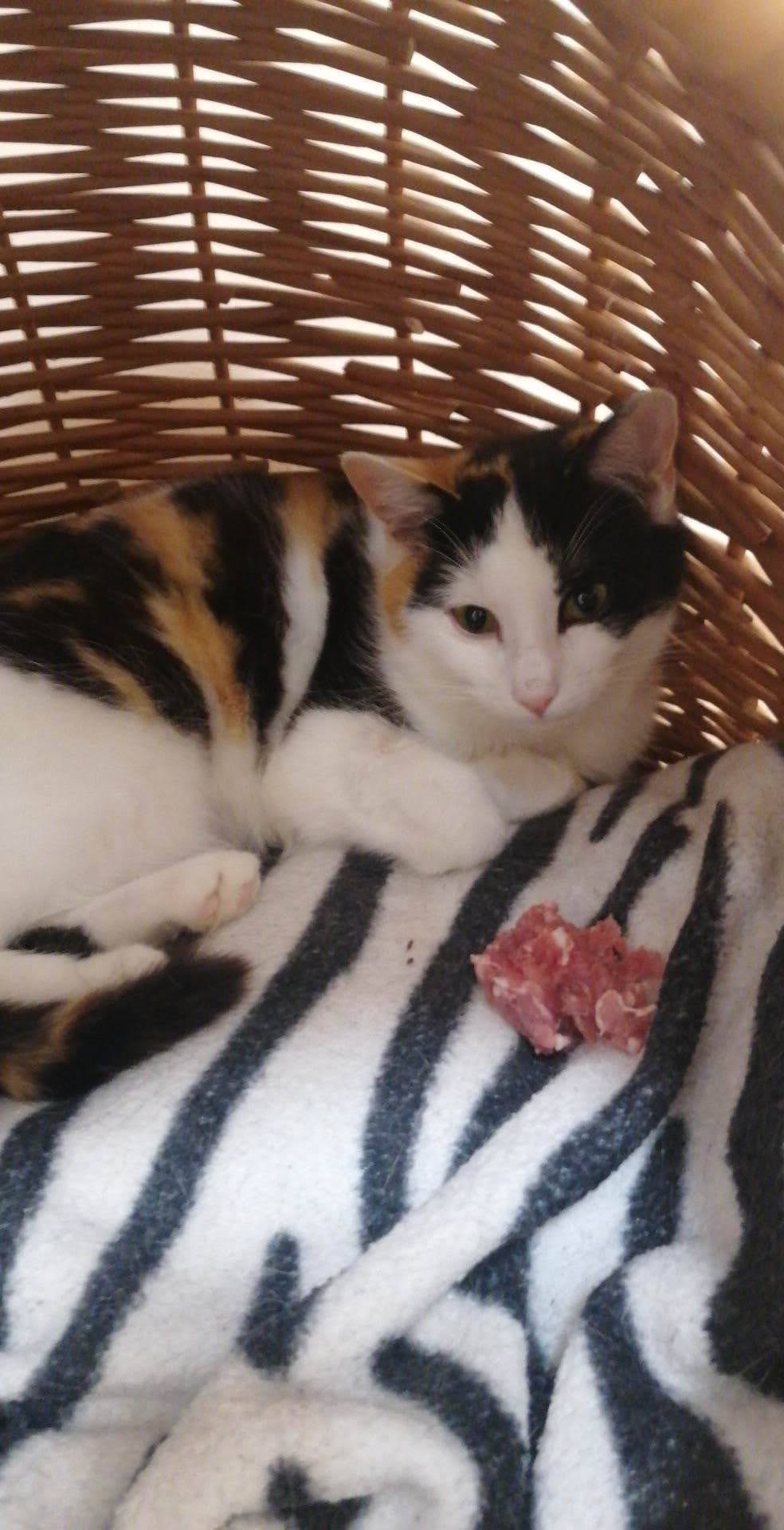 Dla przypomnienia: kotka została zabrana z działek, gdzie spędziła kilka lat. Wcześniej została tam porzucona przez ludzi, gdyż było oczywiste, że to typowo domowa, oswojona kocia dama.