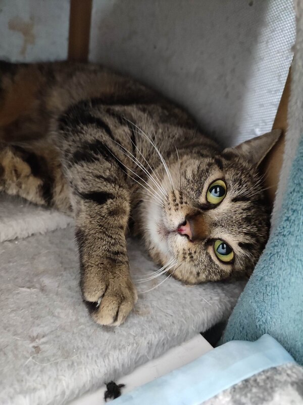 Kotka lubi się bawić, super dogaduje się z innymi kotami i bardzo lubi człowieka. Jest łagodna i bezproblemowa. Szukamy jej dosyć spokojnego domu.