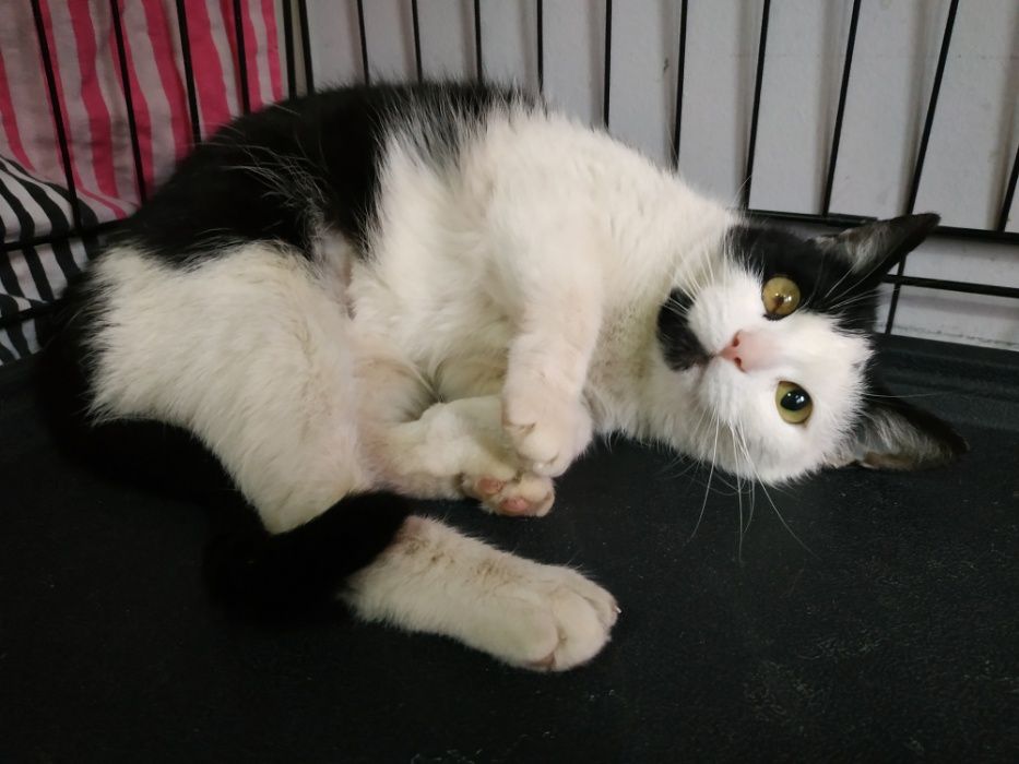 Ta sympatyczna koteczka ma na imię Koniczynka 🙂 Jest bardzo spokojna, uroczo mruczy i potrafi godzinami ugniatać kocyk 😉 Uwielbia kontakt z człowiekiem, bardzo potrzebuje, żeby ktoś obok niej był. Zawołana zawsze przychodzi i doprasza się o głaski 😉 Koniczynka ma zrost źrenicy na jednym oczku, prawdopodobnie z powodu urazu mechanicznego. Na to oczko nie widzi, może jedynie dostrzegać światło/cień. Zupełnie nie utrudnia jej to codziennego funkcjonowania 🙂 Szukamy dla niej cichego domu, bez innych kotów.