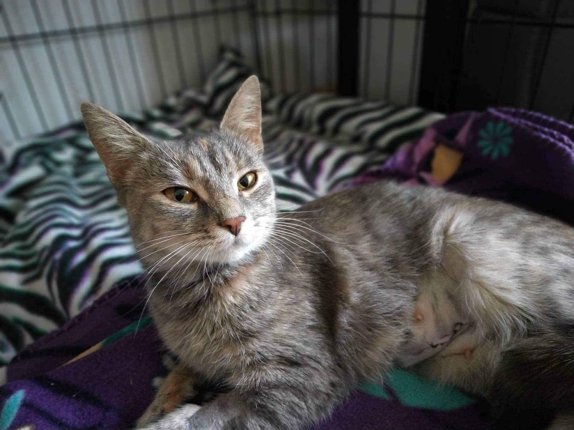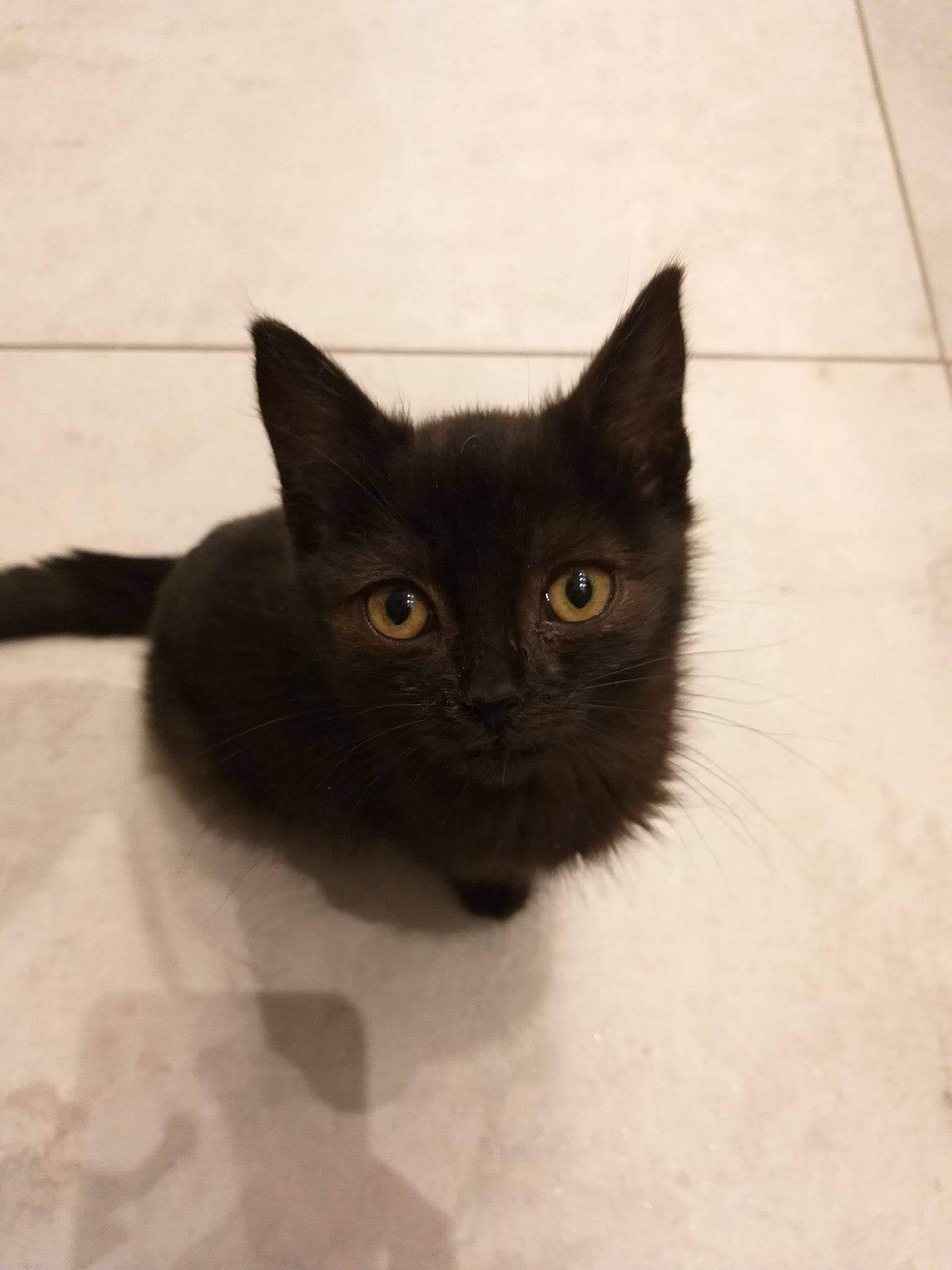To maleństwo zostało podrzucone do jednego z domów w okolicach Stalowej Woli. Jej stan pozwala stwierdzić, że w swoim krótkim życiu zaznała głównie bólu i cierpienia – zaawansowany koci katar, świerzbowiec, cała masa pasożytów zewnętrznych, który gryzły ją okrutnie…przez skórę czuć każdą kosteczkę, a jej sierść jest zrudziała, co też stanowi dowód bardzo złej kondycji.