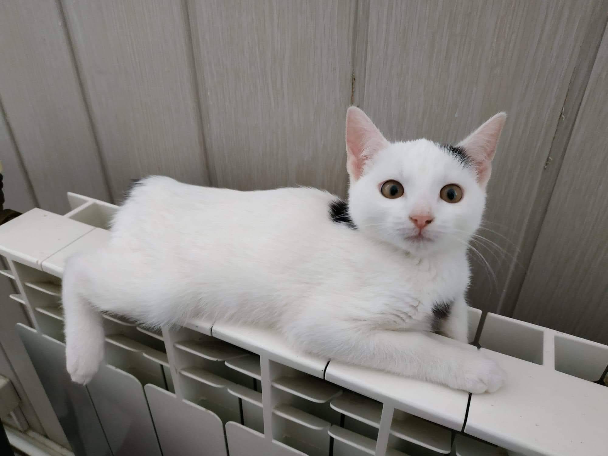 Kotek przeżył traumę, zmarł jego właściciel i nie miał gdzie się podziać. Jest wystraszony zmianami i nowymi kotami wokół. Do człowieka jest bardzo przyjazny, bodzie główką do głaskania, mruczy, wykłada się, chętnie znajdzie dom bez innych zwierząt.